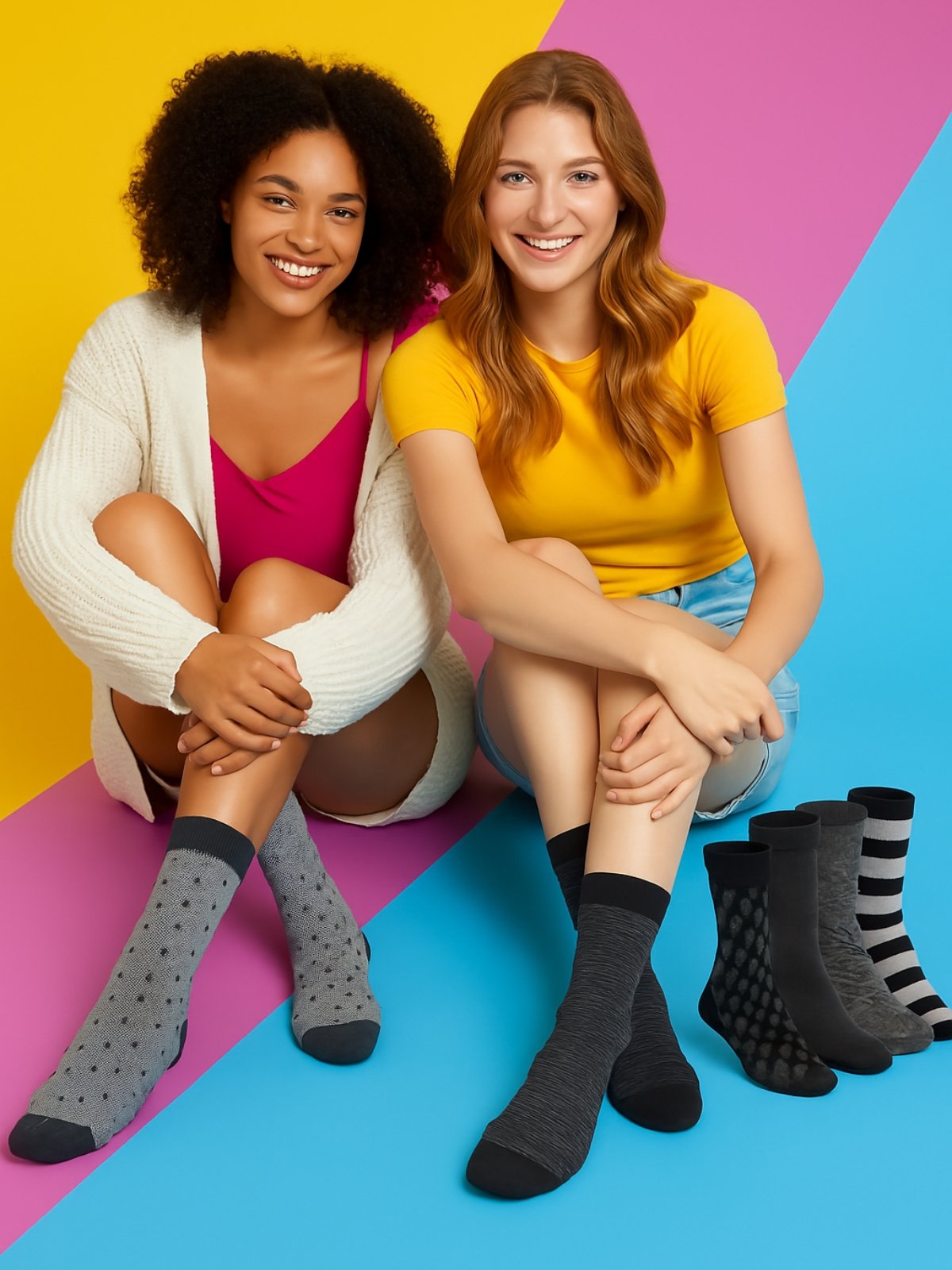 6 pairs Crew Socks Charcoal Gray Assorted Colors-CHGY