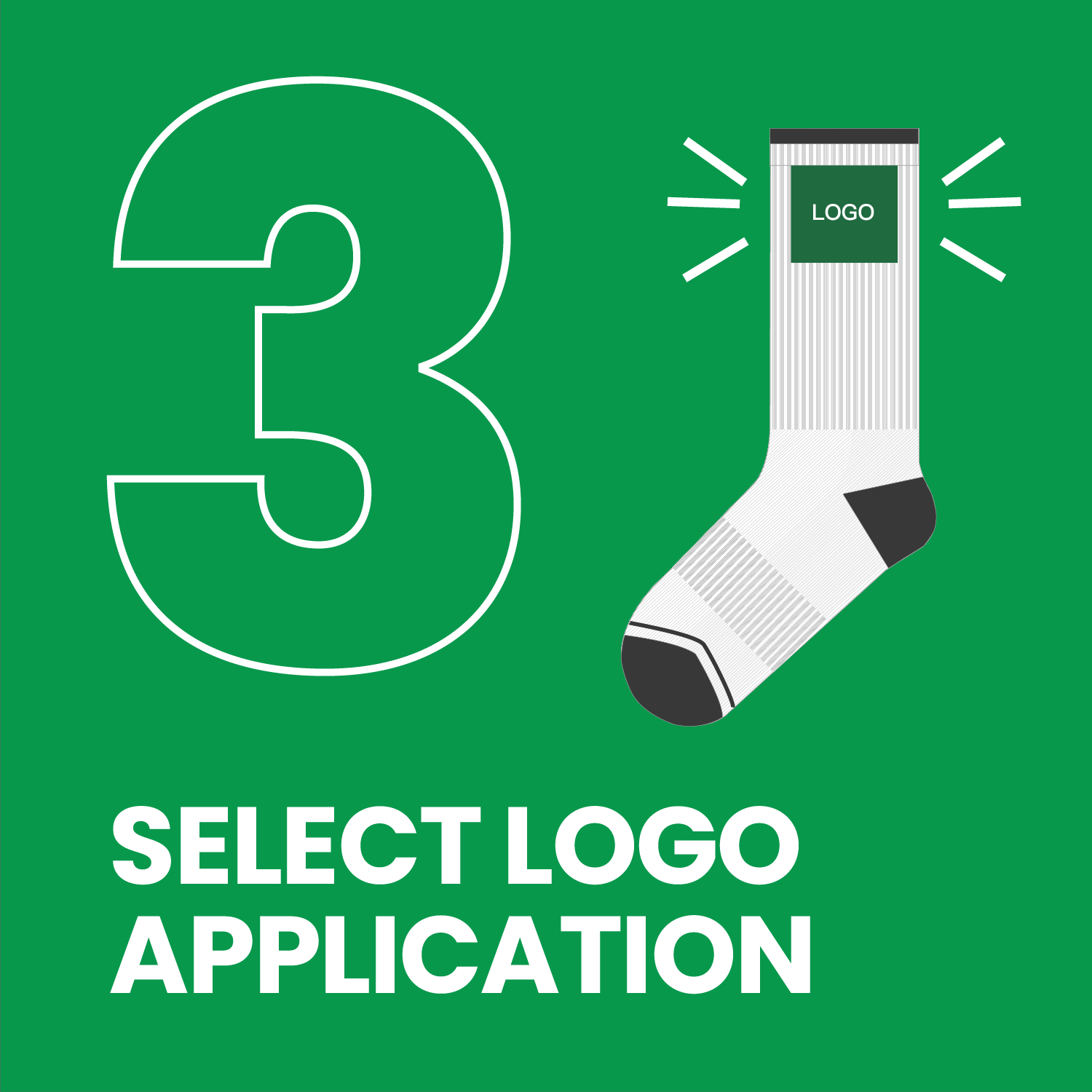 Indicate where your brand logo will be placed. The logo application method will also determine where the logo can be placed. With a knitted in logos, there are little to no limits except the heel and toe of the socks. You get multiple chances to revise the socks before production, so if one method is not working try another one. We are also available to give you examples and suggestions based on our experience.
